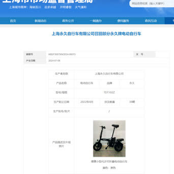 【#永久召回部分电动自行车#,有起火等安全隐患】近日,上海永久自行车